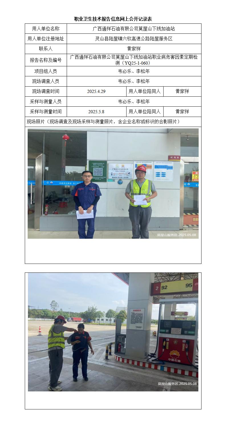 廣西通祥石油有限公司莫屋山下線加油站職業(yè)病危害因素定期檢測(cè)