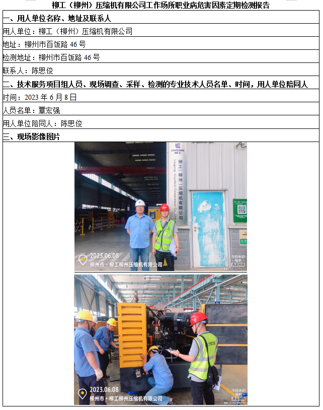 柳工(柳州)壓縮機有限公司工作場所職業(yè)病危害因素定期檢測報告