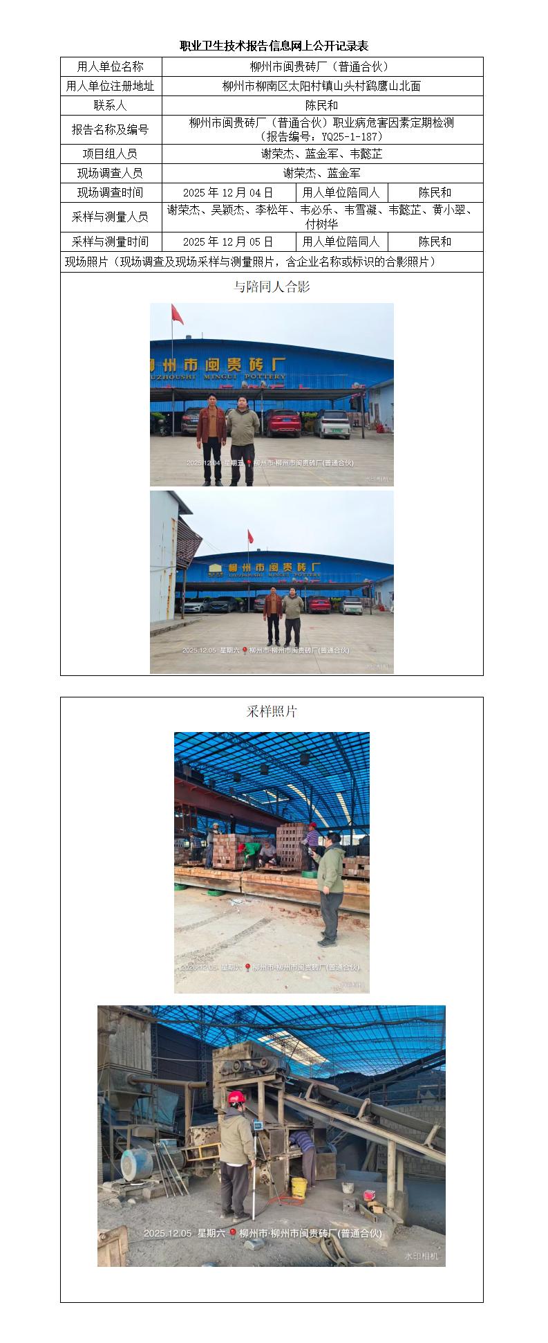 柳州市閩貴磚廠(普通合伙)職業(yè)病危害因素定期檢測(cè) (報(bào)告編號(hào):YQ25-1-187)