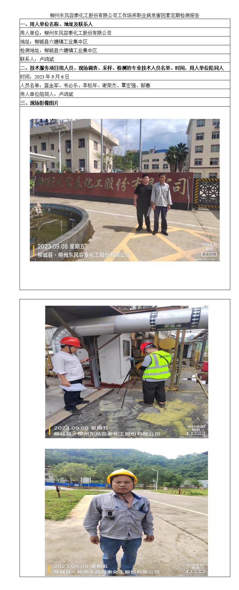 柳州東風容泰化工股份有限公司工作場所職業(yè)病危害因素定期檢測報告