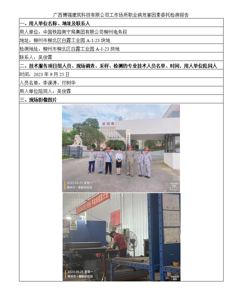 廣西博強建筑科技有限公司工作場所職業(yè)病危害因素委托檢測報告