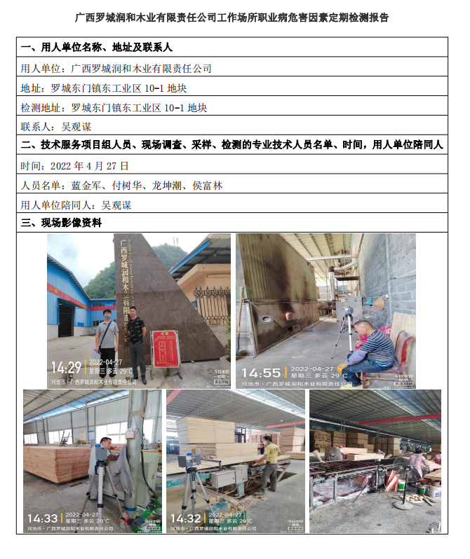 廣西羅城潤和木業(yè)有限責(zé)任公司工作場所職業(yè)病危害因素定期檢測報告