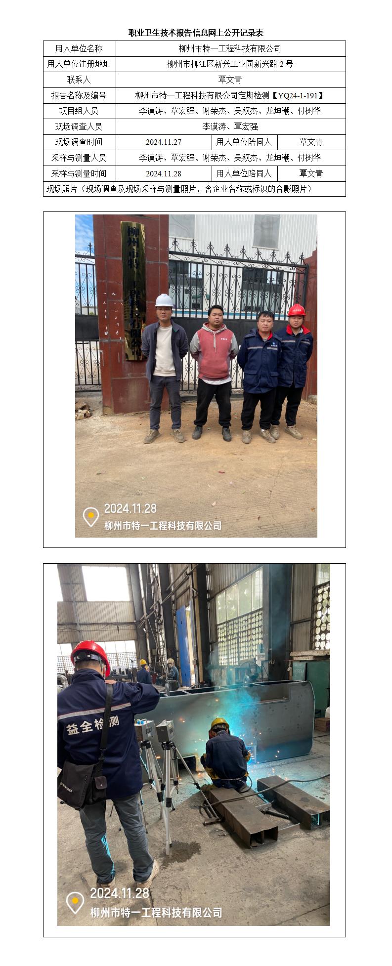 柳州市特一工程科技有限公司 職業(yè)病危害因素定期檢測(cè)報(bào)告
