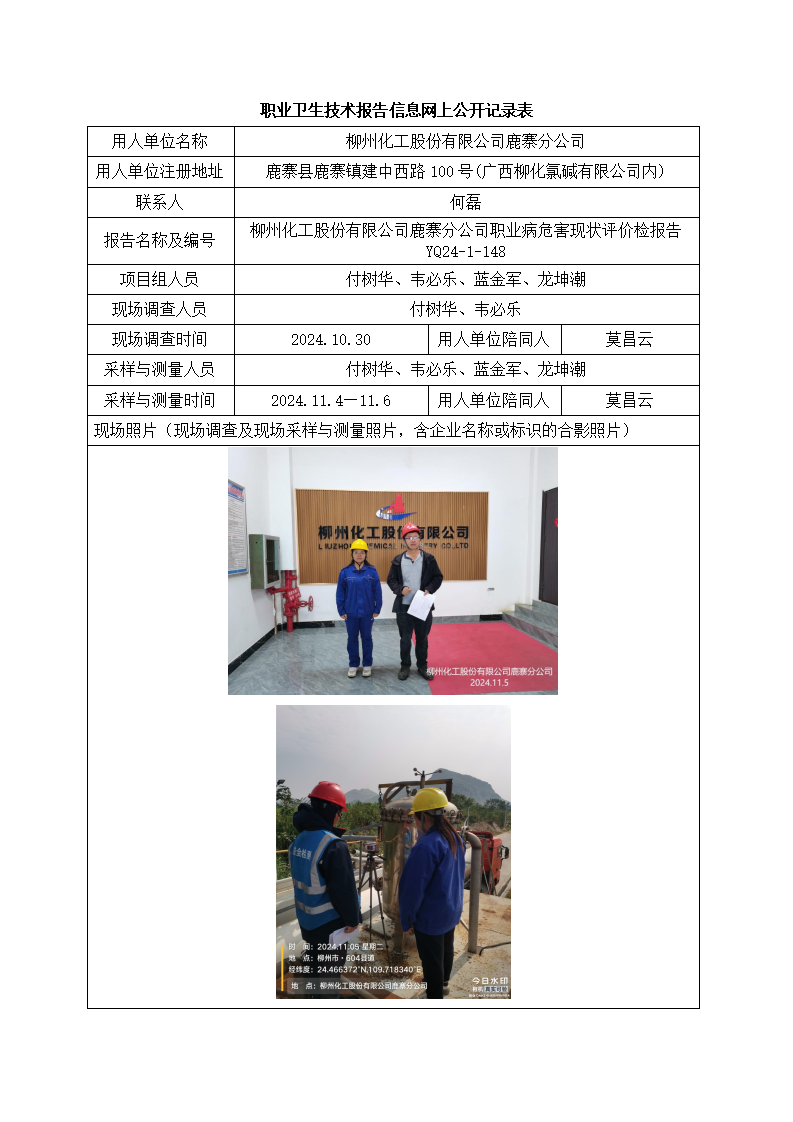 柳州化工股份有限公司鹿寨分公司職業(yè)病危害現(xiàn)狀評(píng)價(jià)檢測(cè)報(bào)告