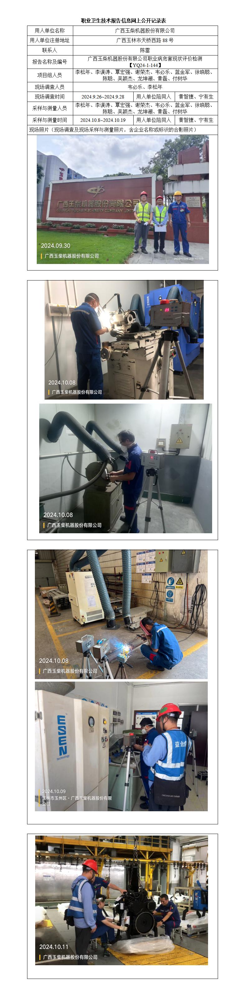 廣西玉柴機器股份有限公司職業(yè)病危害現(xiàn)狀評價檢測報告