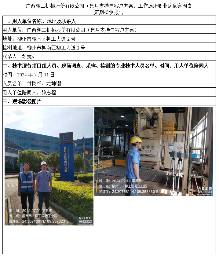 廣西柳工機(jī)械股份有限公司(售后支持與客戶方案)工作場所職業(yè)病危害因素定期檢測報告