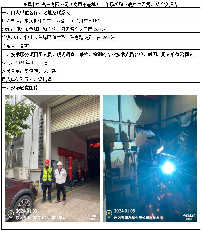 東風柳州汽車有限公司(商用車基地)工作場所職業(yè)病危害因素定期檢測報告