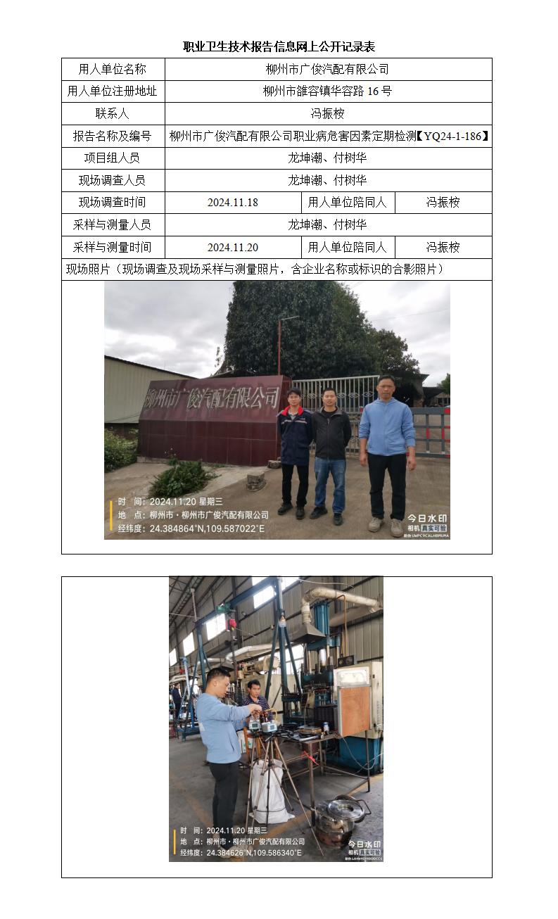柳州市廣俊汽配有限公司職業(yè)病危害因素定期檢測報告