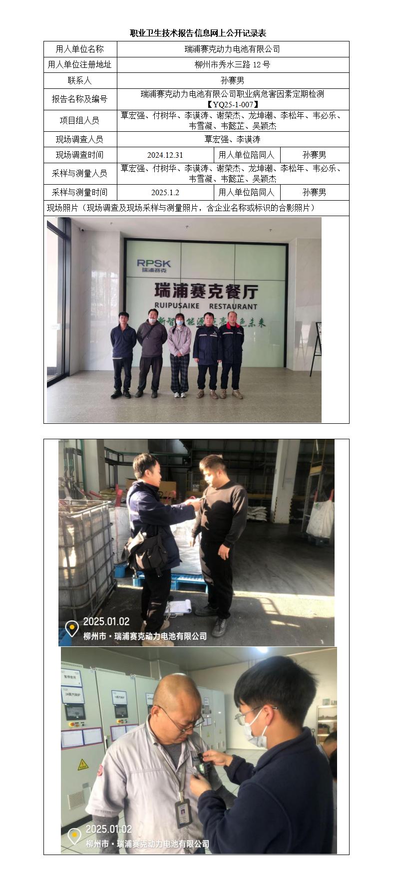 瑞浦賽克動(dòng)力電池有限公司職業(yè)病危害因素定期檢測(cè)報(bào)告