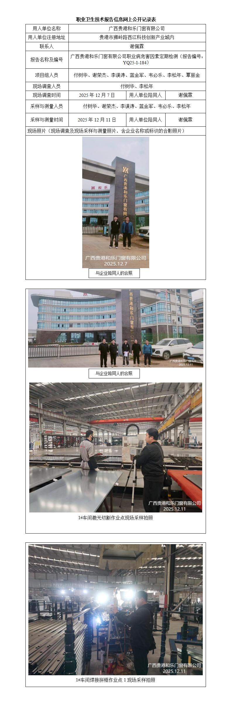 廣西貴港和樂(lè)門窗有限公司職業(yè)病危害因素定期檢測(cè)