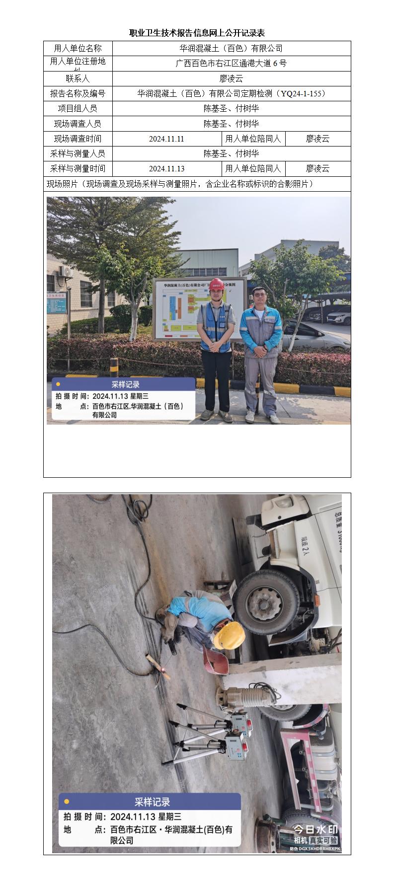 華潤(rùn)混凝土(百色)有限公司工作場(chǎng)所職業(yè)病危害因素定期檢測(cè)報(bào)告