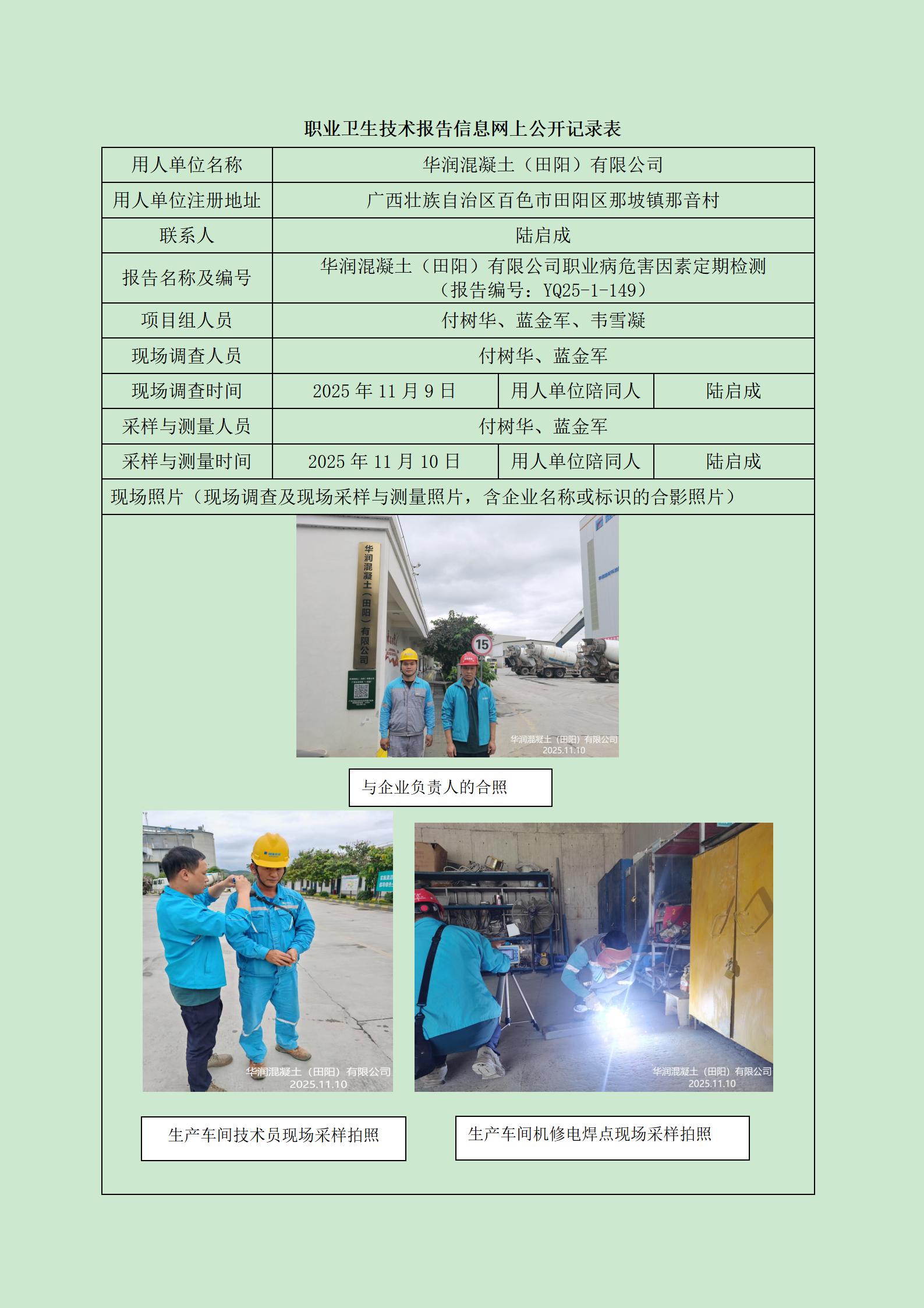 華潤(rùn)混凝土(田陽(yáng))有限公司職業(yè)病危害因素定期檢測(cè)信息網(wǎng)上公開記錄