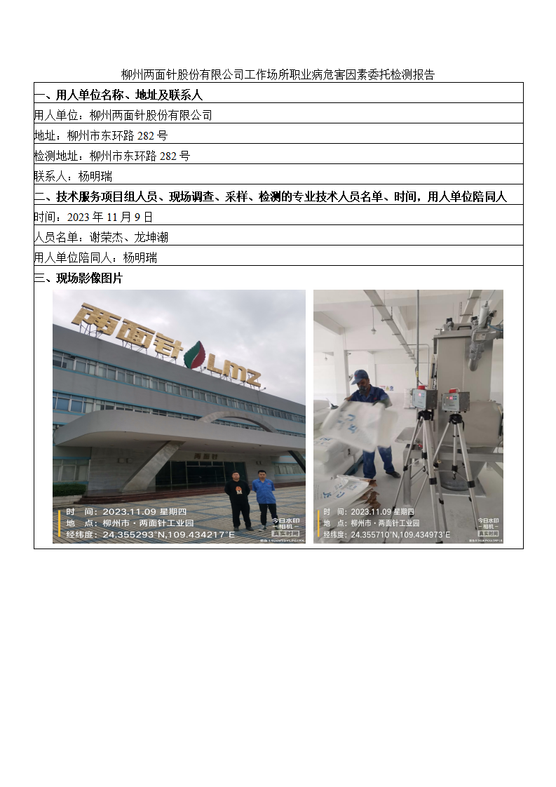 柳州兩面針股份有限公司工作場所職業(yè)病危害因素委托檢測報(bào)告