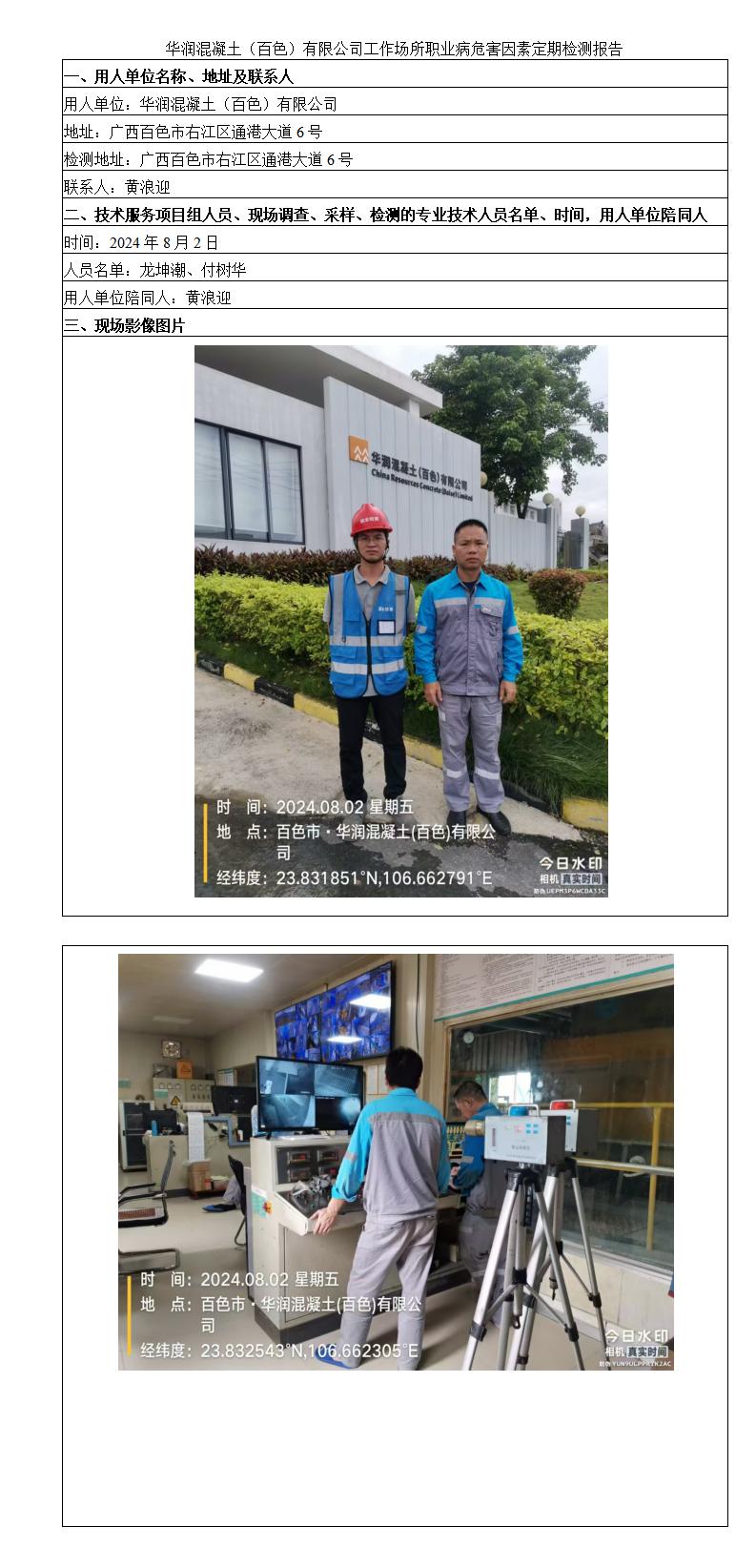 華潤(rùn)混凝土(百色)有限公司工作場(chǎng)所職業(yè)病危害因素定期檢測(cè)報(bào)告