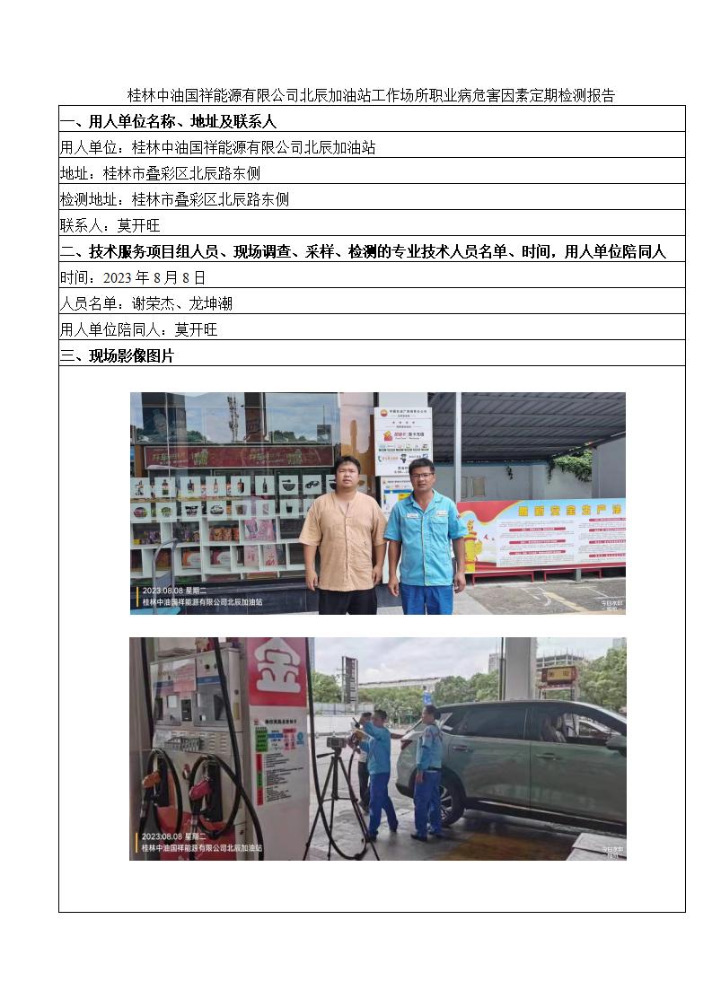 桂林中油國祥能源有限公司北辰加油站工作場所職業(yè)病危害因素定期檢測報告