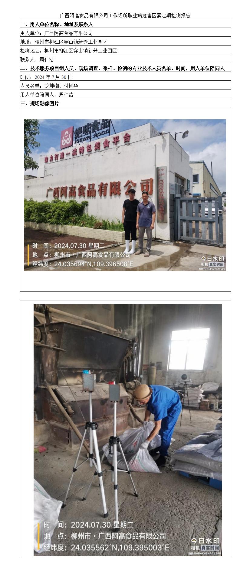 廣西阿高食品有限公司工作場(chǎng)所職業(yè)病危害因素定期檢測(cè)報(bào)告
