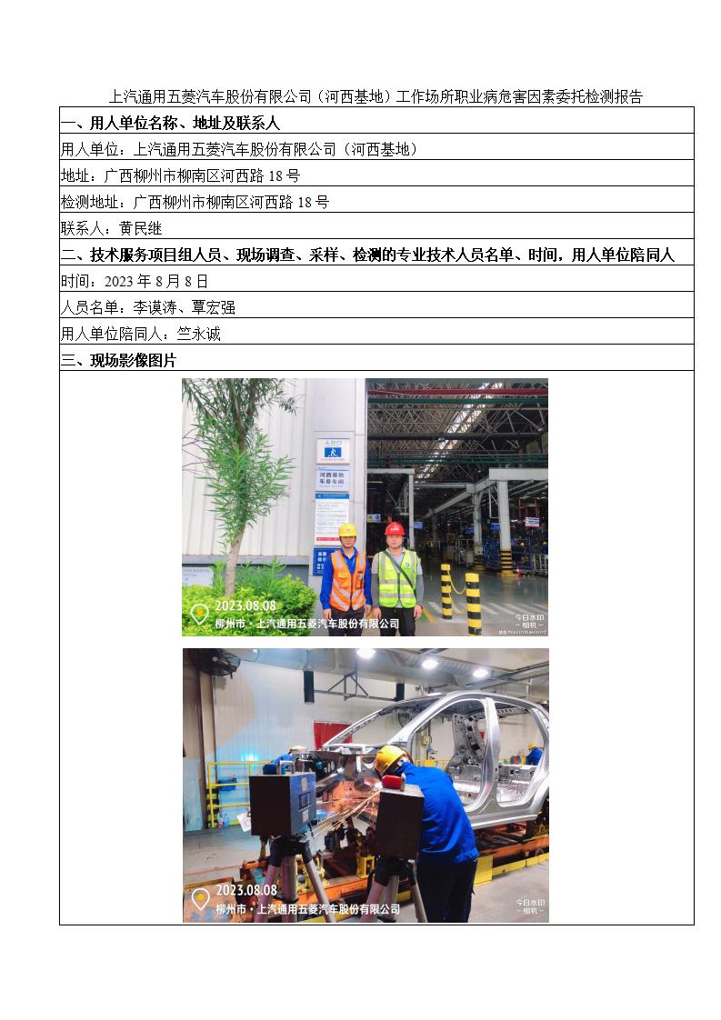 上汽通用五菱汽車股份有限公司(河西基地)工作場(chǎng)所職業(yè)病危害因素委托檢測(cè)報(bào)告