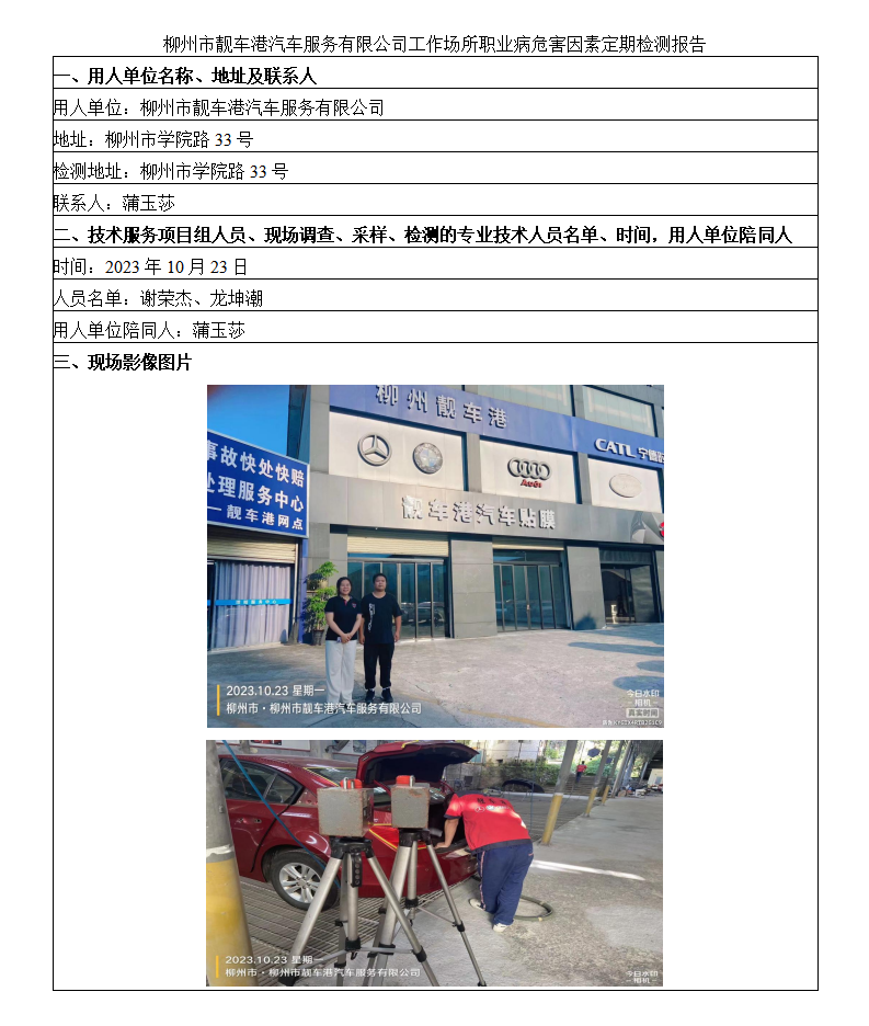柳州市靚車(chē)港汽車(chē)服務(wù)有限公司工作場(chǎng)所職業(yè)病危害因素定期檢測(cè)報(bào)告