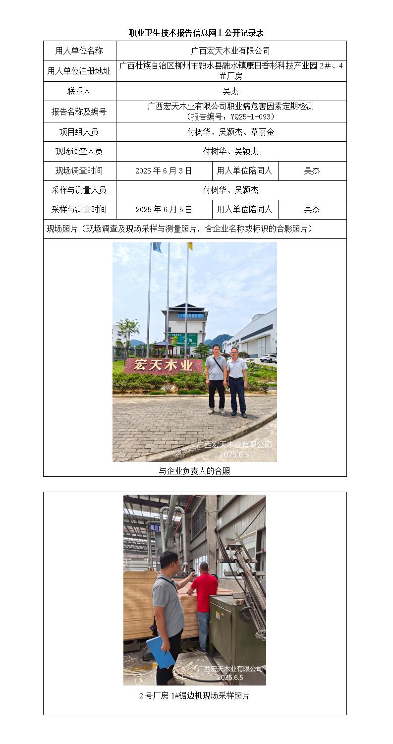 廣西宏天木業(yè)有限公司職業(yè)病因素危害因素定期檢測報告