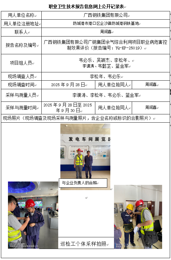 廣西鋼鐵集團(tuán)有限公司廣鋼集團(tuán)余氣綜合利用項(xiàng)目職業(yè)病危害控制效果評(píng)價(jià)
