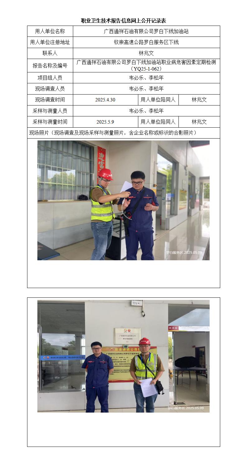 廣西通祥石油有限公司羅白下線加油站職業(yè)病危害因素定期檢測(cè)