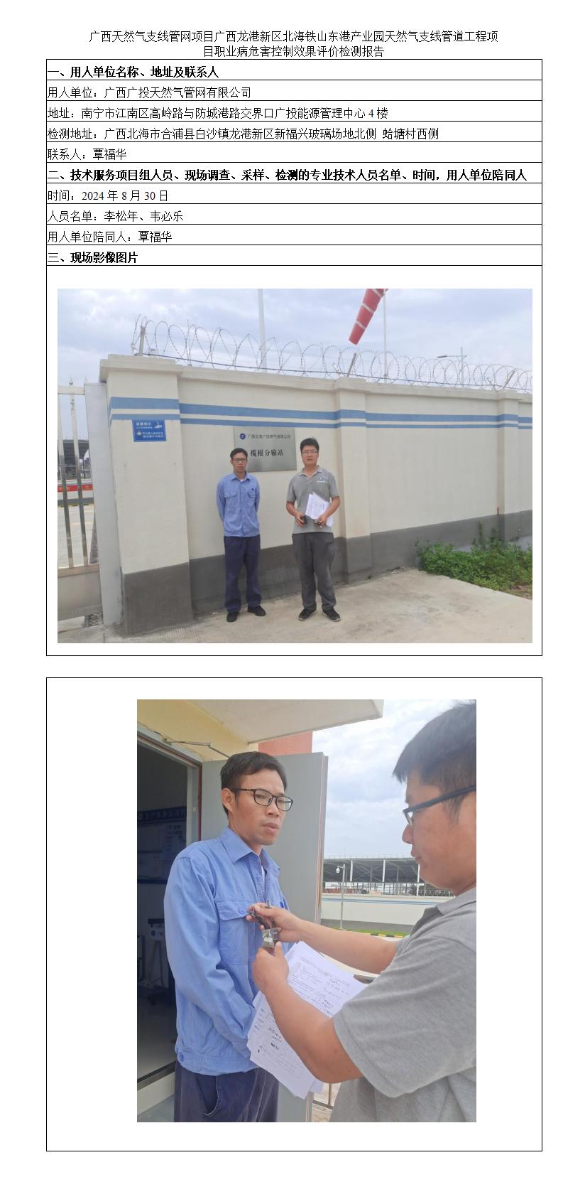 廣西天然氣支線管網(wǎng)項(xiàng)目廣西龍港新區(qū)北海鐵山東港產(chǎn)業(yè)園天然氣支線管道工程項(xiàng)目職業(yè)病危害控制效果評(píng)價(jià)檢測(cè)報(bào)告