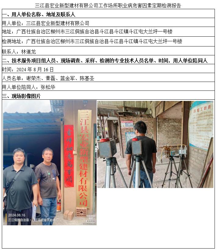 三江縣宏業(yè)新型建材有限公司工作場所職業(yè)病危害因素定期檢測報告