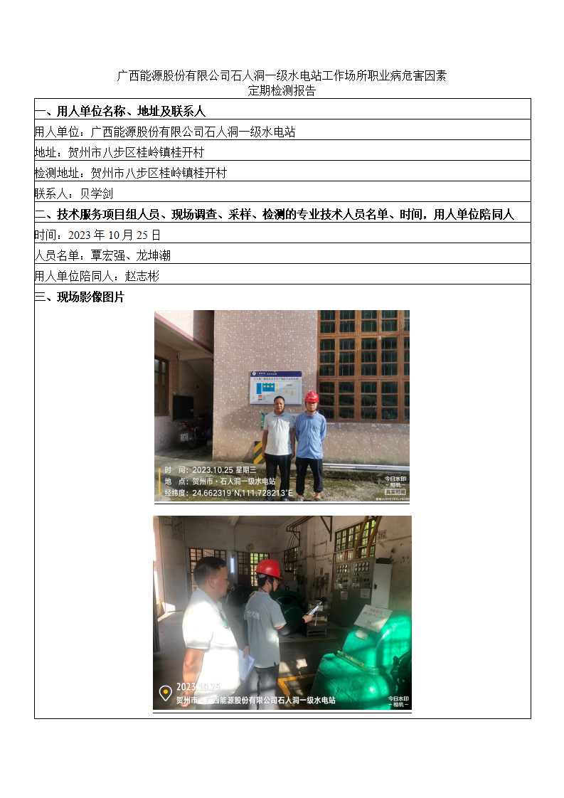 廣西能源股份有限公司石人洞一級水電站工作場所職業(yè)病危害因素定期檢測報告