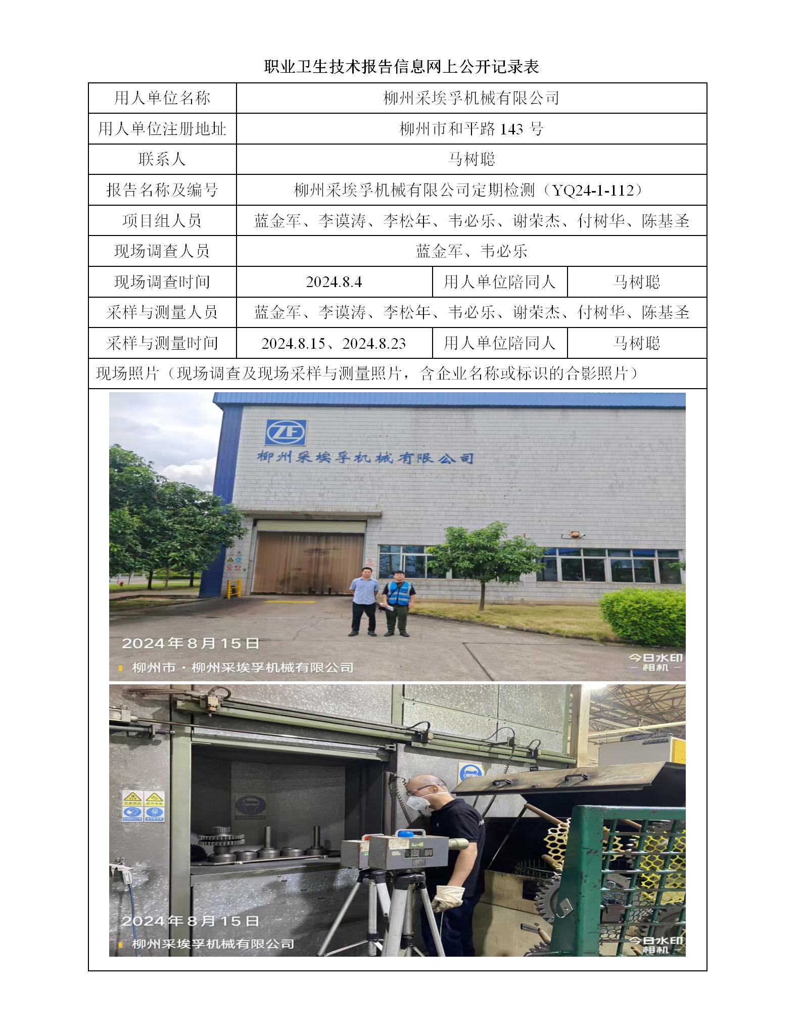 柳州采埃孚機(jī)械有限公司 工作場(chǎng)所職業(yè)病危害因素定期檢測(cè)報(bào)告