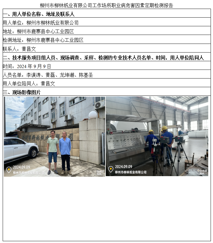 柳州市柳林紙業(yè)有限公司工作場(chǎng)所職業(yè)病危害因素定期檢測(cè)報(bào)告