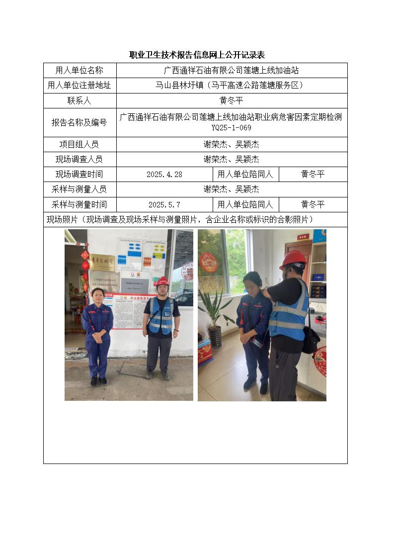 廣西通祥石油有限公司蓮塘上線加油站職業(yè)病危害因素定期檢測