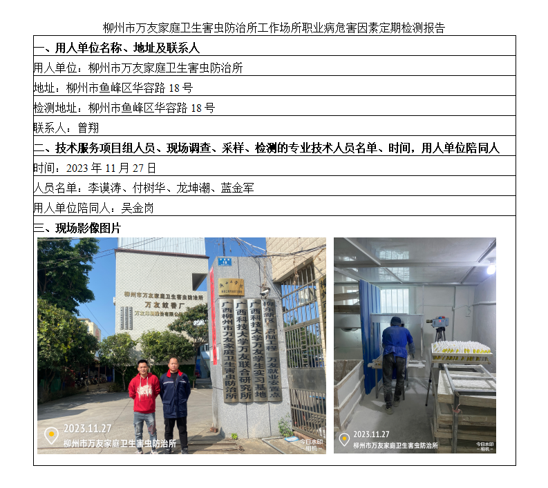 柳州市萬友家庭衛(wèi)生害蟲防治所工作場所職業(yè)病危害因素定期檢測報告