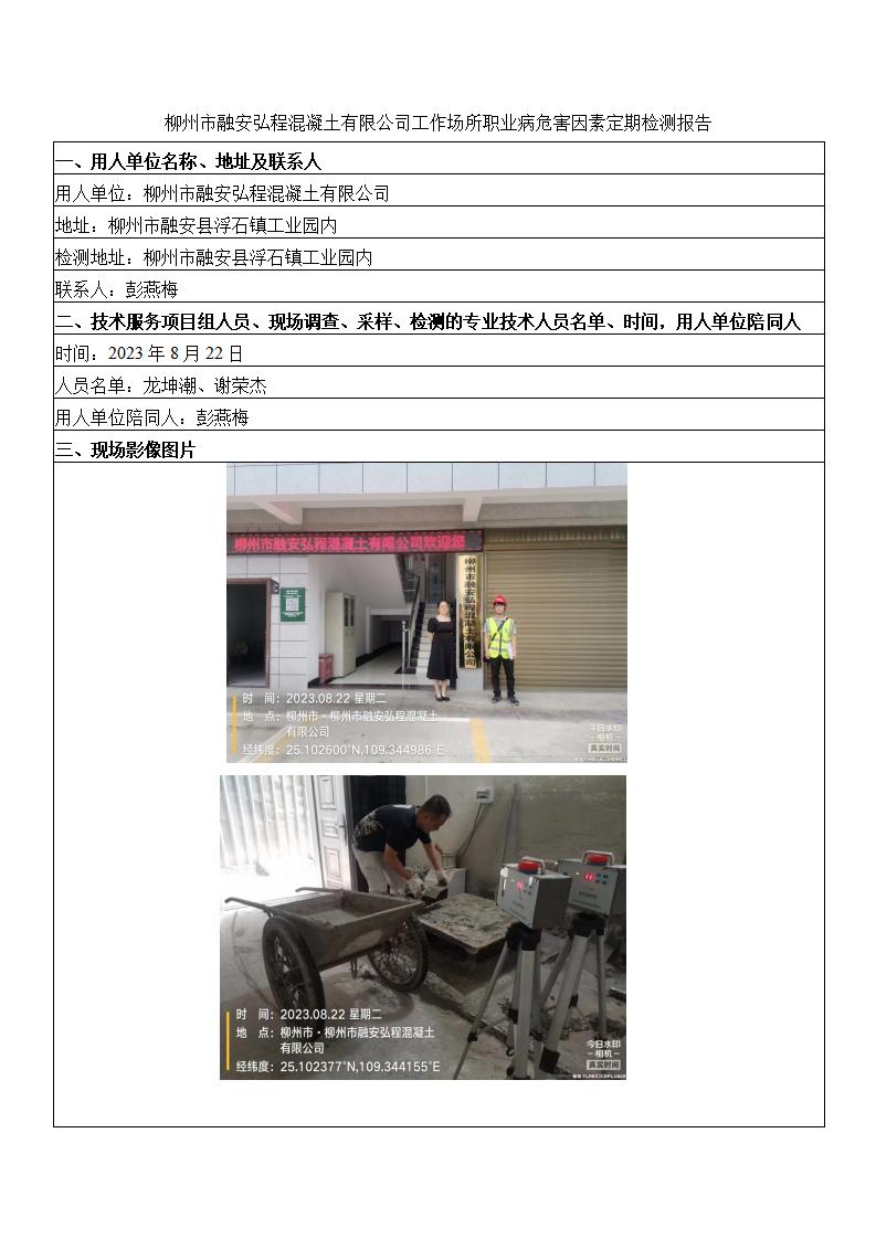 柳州市融安弘程混凝土有限公司工作場所職業(yè)病危害因素定期檢測報(bào)告