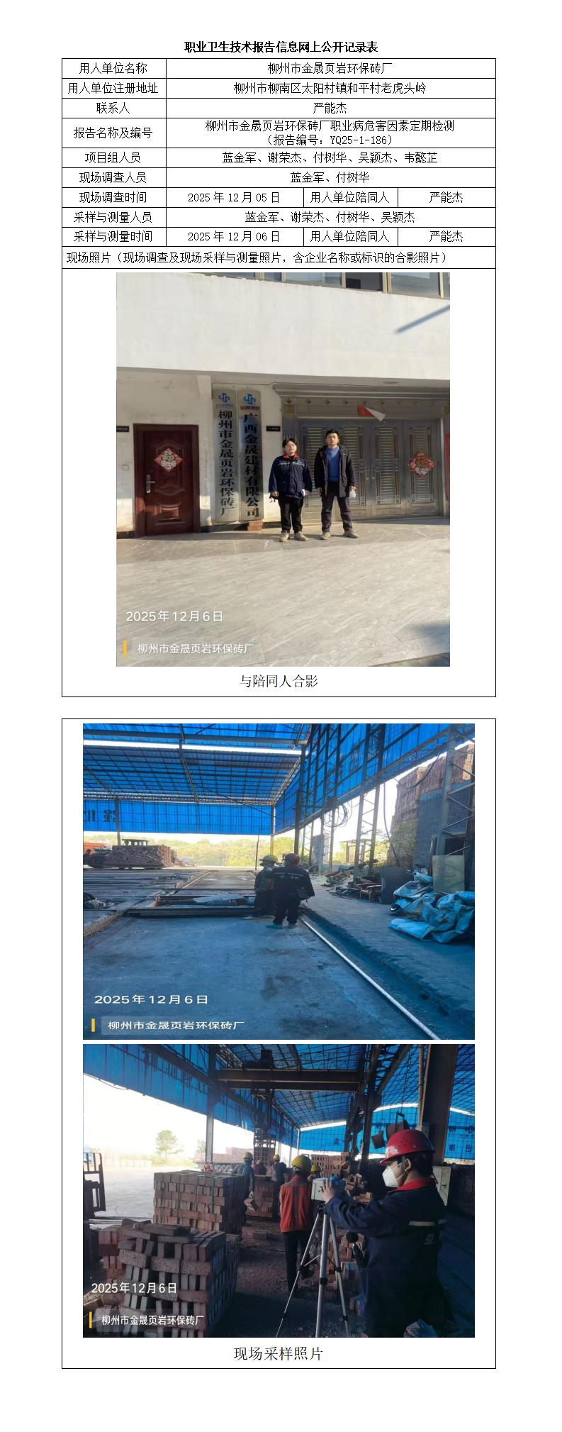 柳州市金晟頁巖環(huán)保磚廠職業(yè)病危害因素定期檢測 (報告編號:YQ25-1-186)