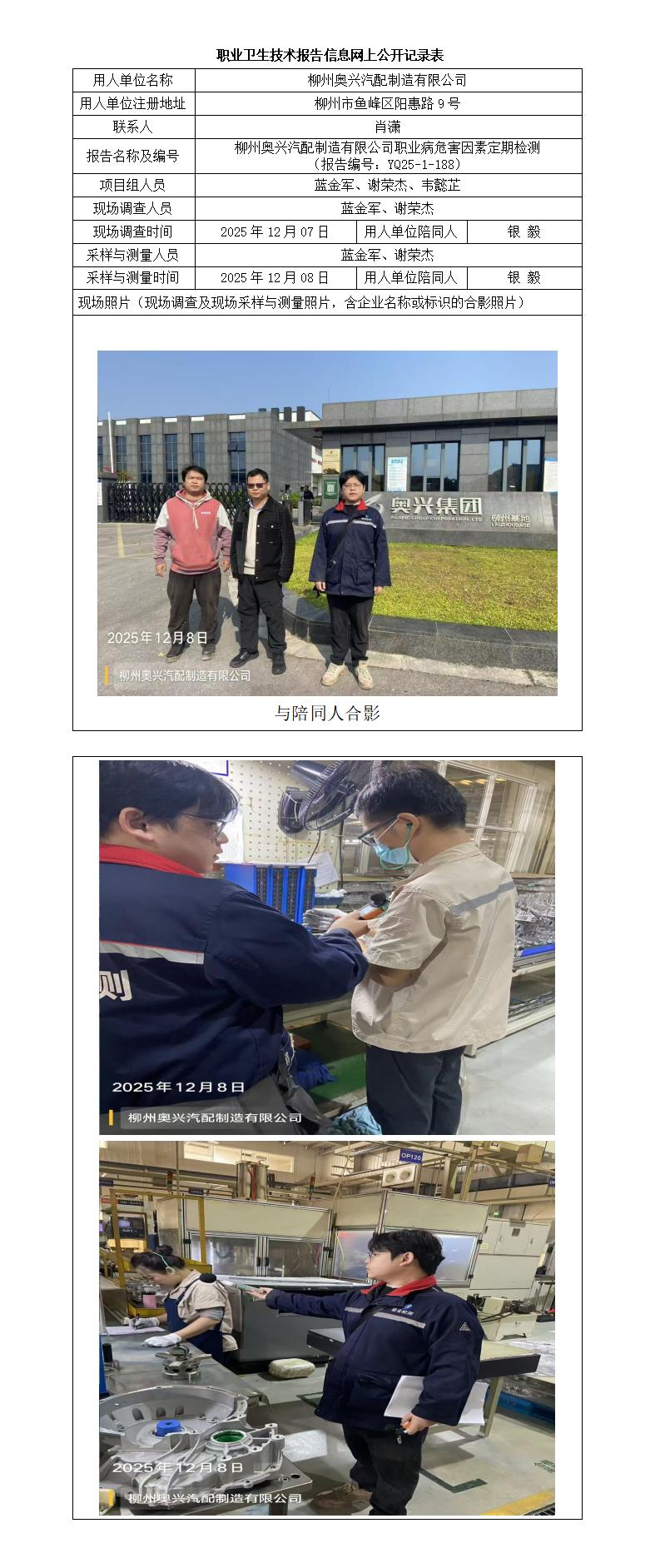 柳州奧興汽配制造有限公司職業(yè)病危害因素定期檢測 (報(bào)告編號(hào):YQ25-1-188)