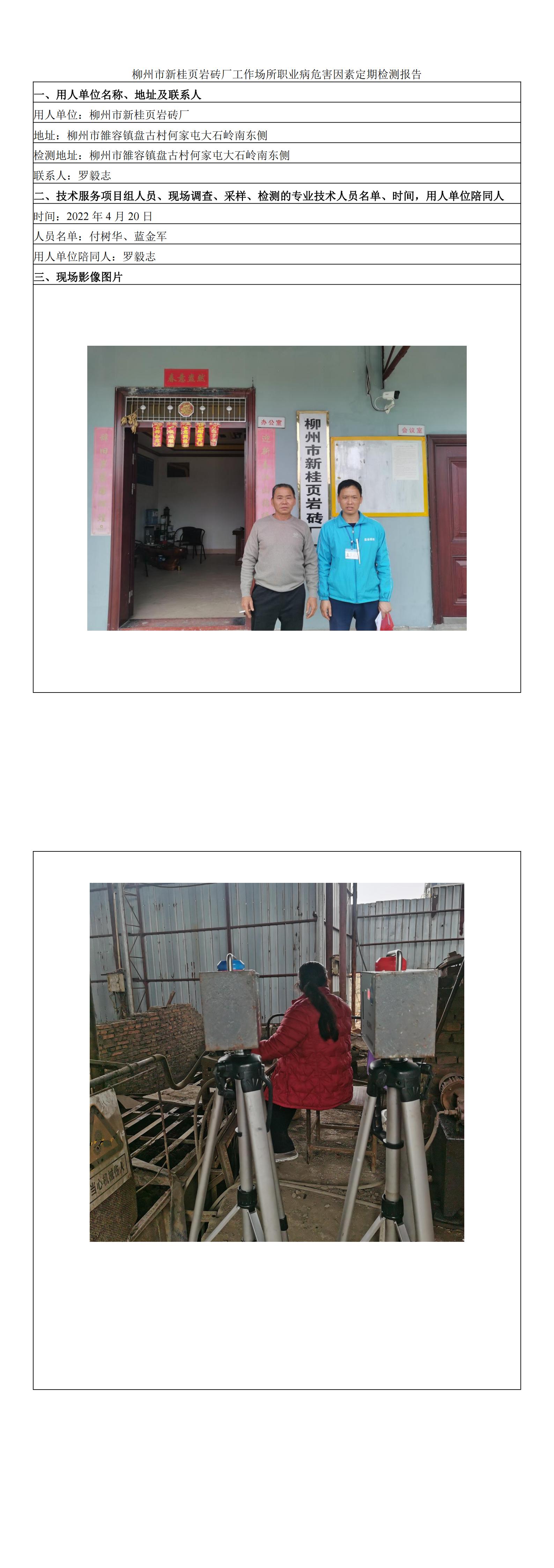 柳州市新桂頁巖磚廠工作場所職業(yè)病危害因素定期檢測報告