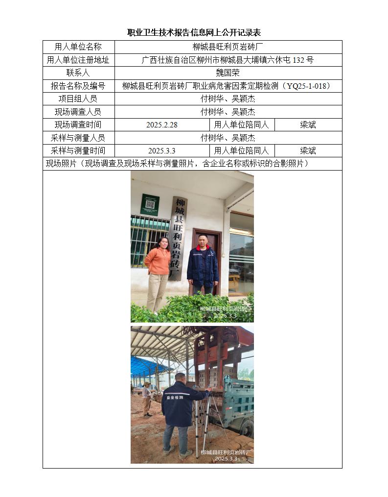 柳城縣旺利頁巖磚廠職業(yè)病危害因素定期檢測報告