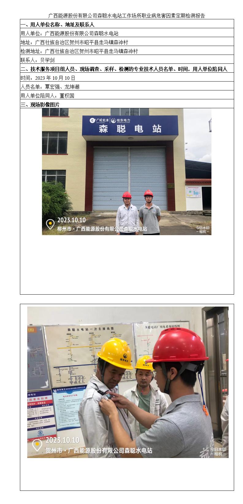 廣西能源股份有限公司森聰水電站工作場(chǎng)所職業(yè)病危害因素定期檢測(cè)報(bào)告