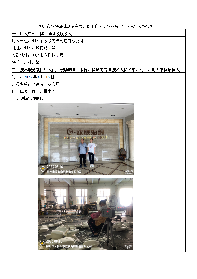 柳州市歐聯(lián)海綿制造有限公司工作場所職業(yè)病危害因素定期檢測報告