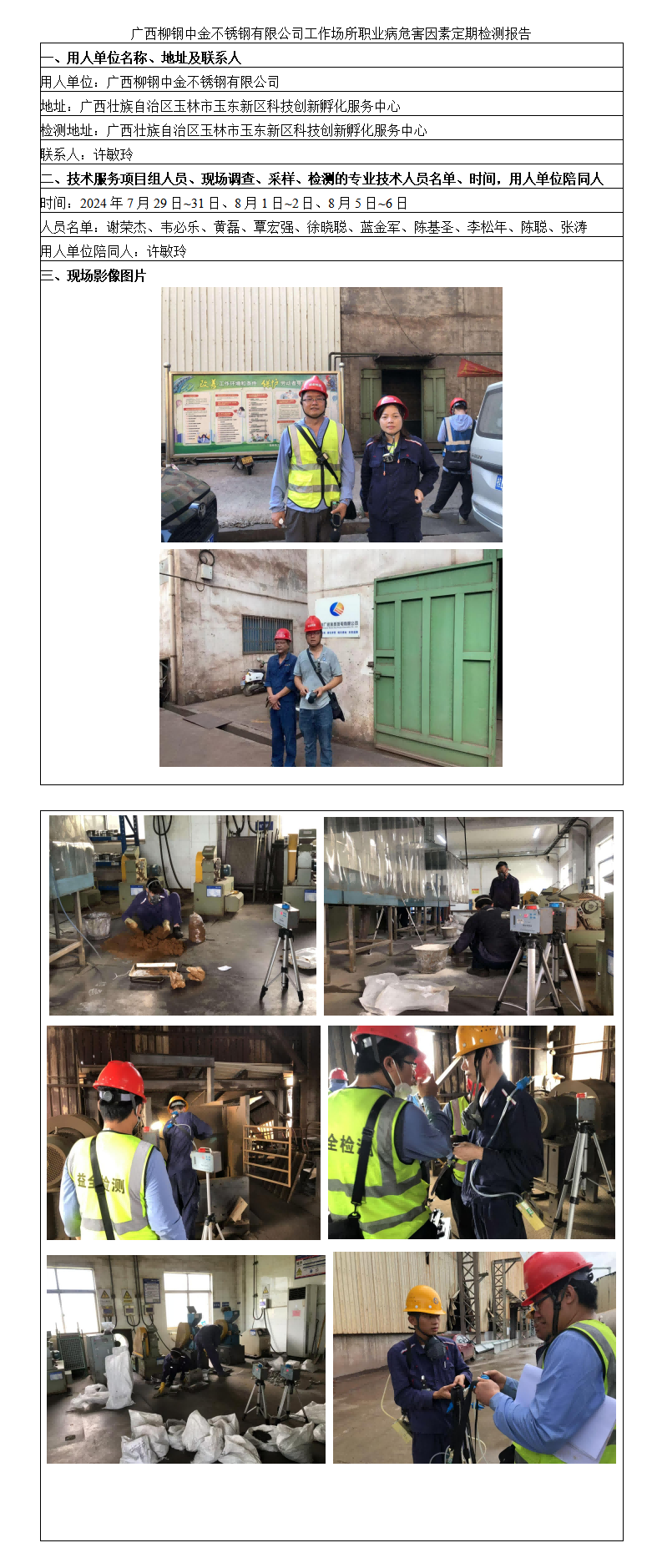 廣西柳鋼中金不銹鋼有限公司工作場所職業(yè)病危害因素定期檢測報告