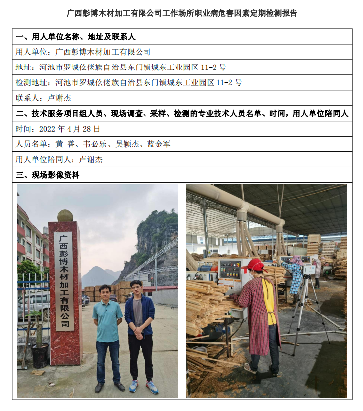 廣西彭博木材加工有限公司工作場(chǎng)所職業(yè)病危害因素定期檢測(cè)報(bào)告
