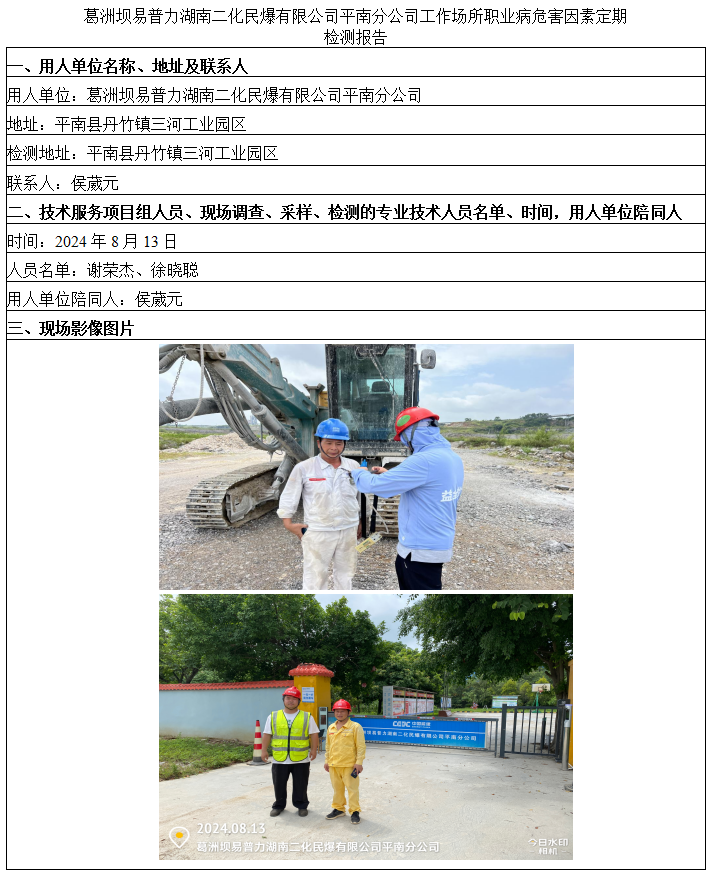 葛洲壩易普力湖南二化民爆有限公司平南分公司工作場所職業(yè)病危害因素定期檢測報告