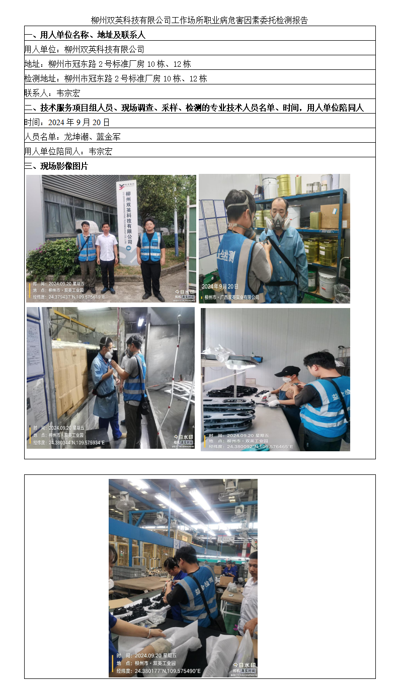 柳州雙英科技有限公司工作場所職業(yè)病危害因素委托檢測報告
