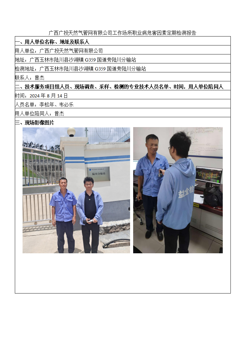 廣西廣投天然氣管網(wǎng)有限公司工作場所職業(yè)病危害因素定期檢測報(bào)告