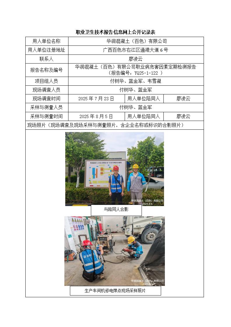 華潤混凝土(百色)有限公司職業(yè)病危害因素定期檢測