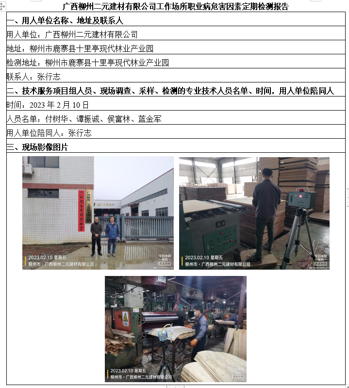 廣西柳州二元建材有限公司工作場所職業(yè)病危害因素定期檢測報告