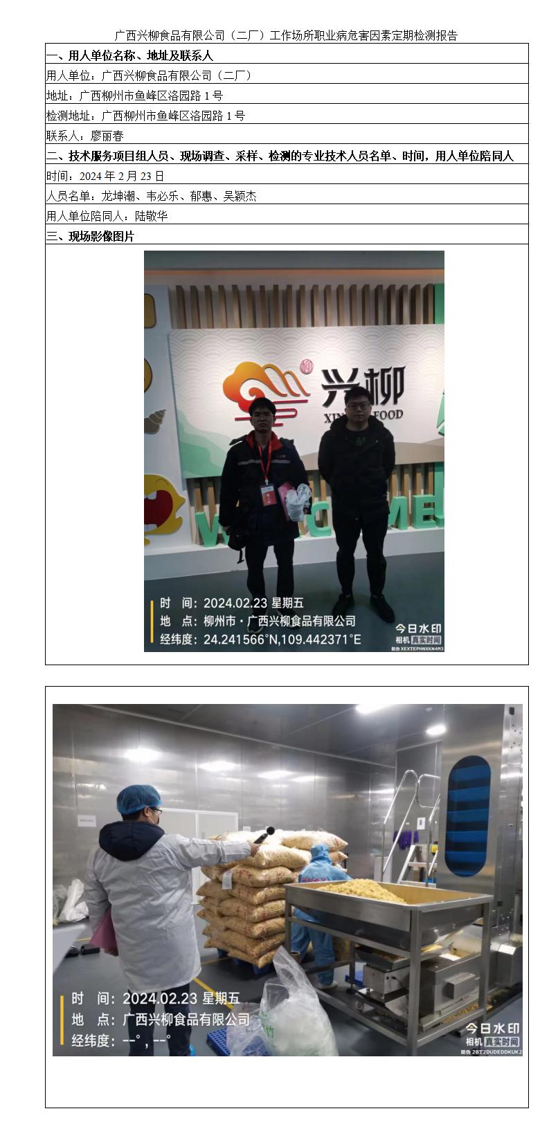 廣西興柳食品有限公司(二廠)工作場所職業(yè)病危害因素定期檢測報(bào)告