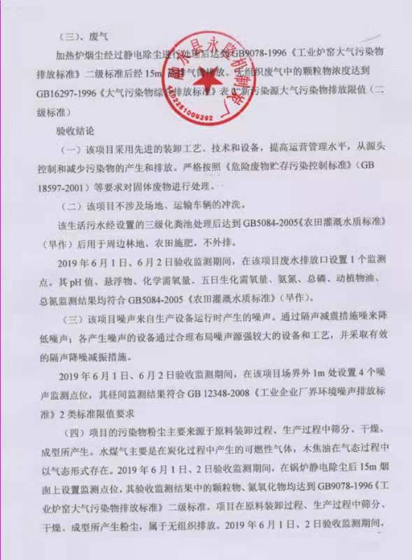 融水縣永樂鎮(zhèn)永隆機(jī)制炭廠年產(chǎn)機(jī)制炭300t建設(shè)項(xiàng)目(廢氣、廢水、噪聲)竣工環(huán)境保護(hù)驗(yàn)收監(jiān)測(cè)報(bào)告表及項(xiàng)目驗(yàn)收意見進(jìn)行公示公開