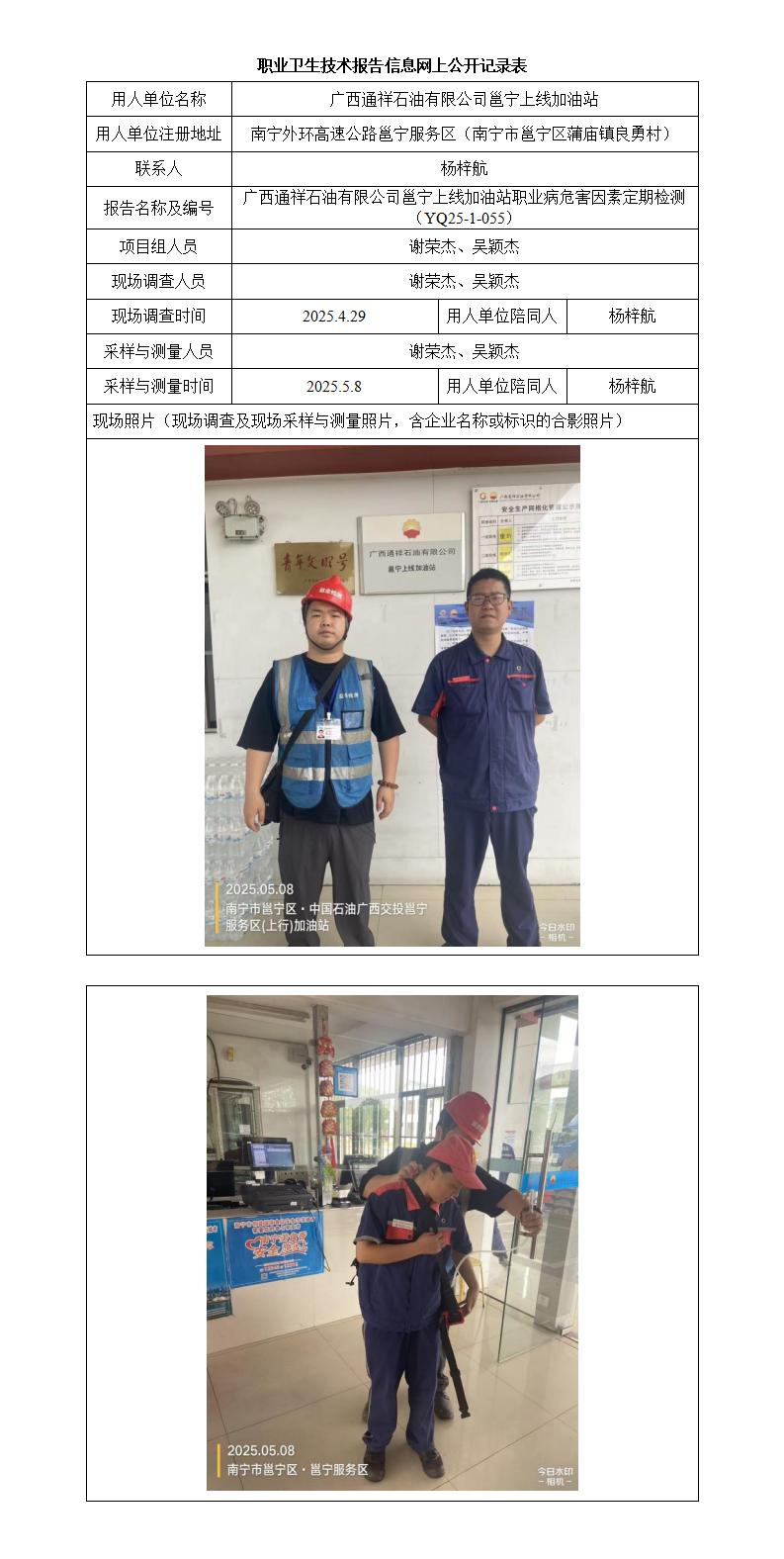 廣西通祥石油有限公司邕寧上線加油站職業(yè)病危害因素定期檢測(cè)