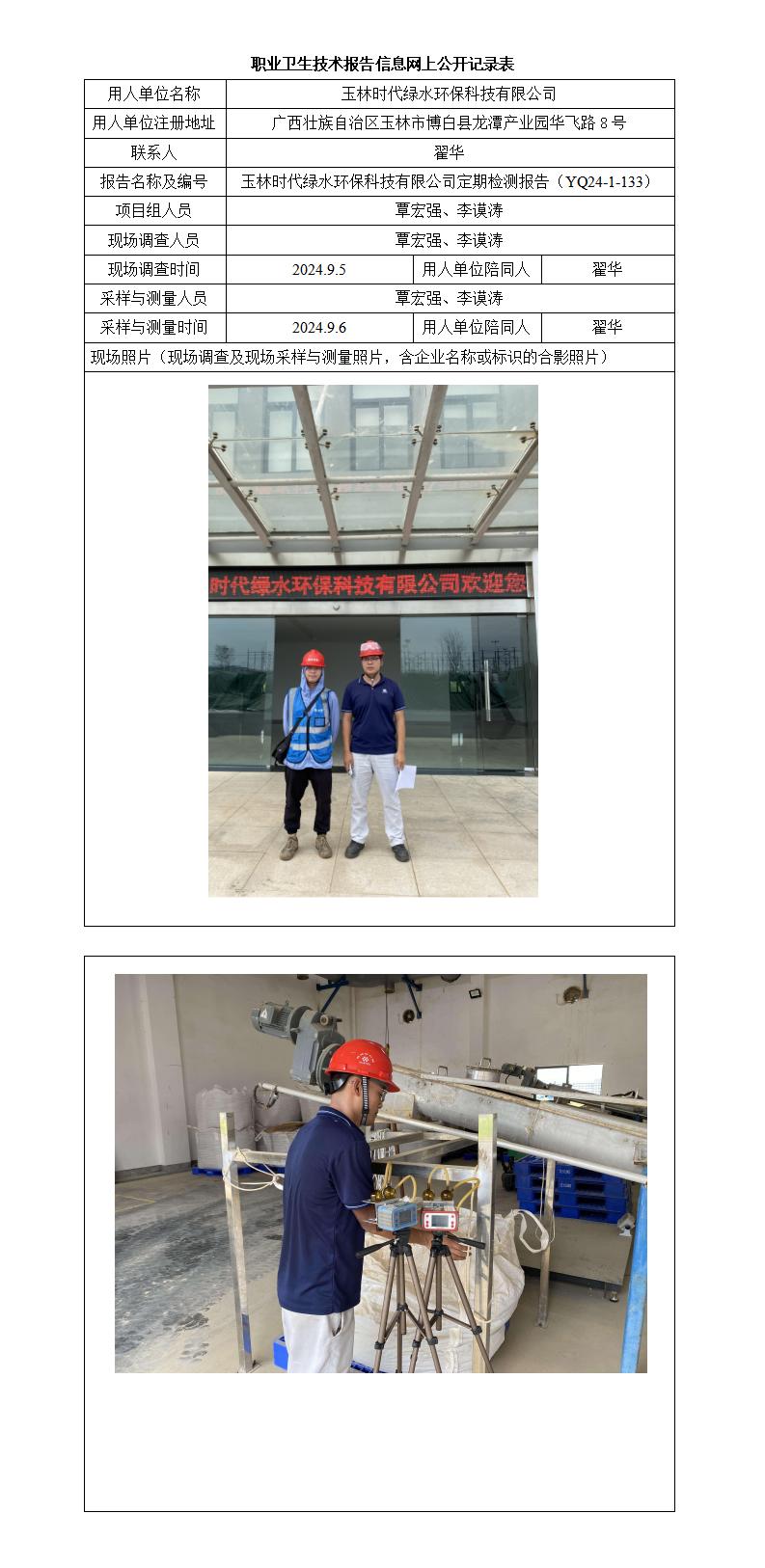 玉林時代綠水環(huán)?萍加邢薰竟ぷ鲌鏊殬I(yè)病危害因素定期檢測報告
